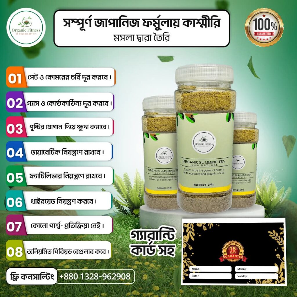 কি কি দিয়ে তৈরি এই Sli- ming Tea (Ingredients) : China Seeds, Charon Seeds, Flax Seeds, Cinnamon Powder, Sesame Seeds, Fenugreek Seeds, Macha Powder, Black Cumin Seeds,Pumkin Seeds, আরো অনেক সিক্রেট উপাদান এ তৈরি।